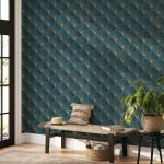 Indigo geometrical waves - Non Toxic Wall Paper Decor, Home & Office Decor - BestOfBharat