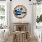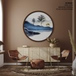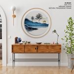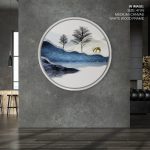 Indigo golden landscape #548 - Circular Wooden Frame - Wall Art, Hanging Wall Decor, Home Decor - BestOfBharat