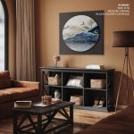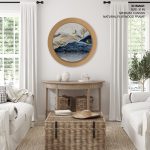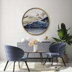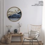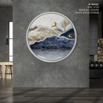 Indigo golden landscape - Circular Wooden Frame - Wall Art, Hanging Wall Decor, Home Decor - BestOfBharat