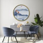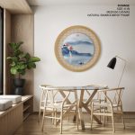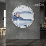 Indigo mountainscape - Circular Wooden Frame - Wall Art, Hanging Wall Decor, Home Decor - BestOfBharat