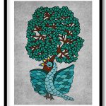 Wall Decor | Indigo traditional gond bird tree life | Custom Size & Frame • Ready to Hang • Made in India • Eco-Friendly