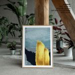 Wall Art | Inflated gold and blue modern abstract #103 | Small to XXXL Sizes • 50+ Framing Styles • Non Toxic