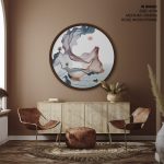 Ink artistic landscape #282 - Circular Wooden Frame - Wall Art, Hanging Wall Decor, Home Decor - BestOfBharat