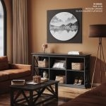 Framed Art | Ink mountainscape #667 - Circular Wooden Frame | 50+ Frame Styles • Museum Quality • Made in India