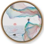Framed Art | Inkish japanese landscape #853 - Circular Wooden Frame | 50+ Frame Styles • Museum Quality • Made in India