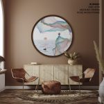 Inkish japanese landscape #853 - Circular Wooden Frame - Wall Art, Hanging Wall Decor, Home Decor - BestOfBharat