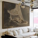 You can wipe it off with microfiber cloth or damp cloth with water and soft soap (shampoo). If your frame has canvas without glass, we recommend simply dust using a dry soft and fine brush. Refrain from using wood polish or cleaning sprays since this could potentially create moisture and possibly damage the artwork.