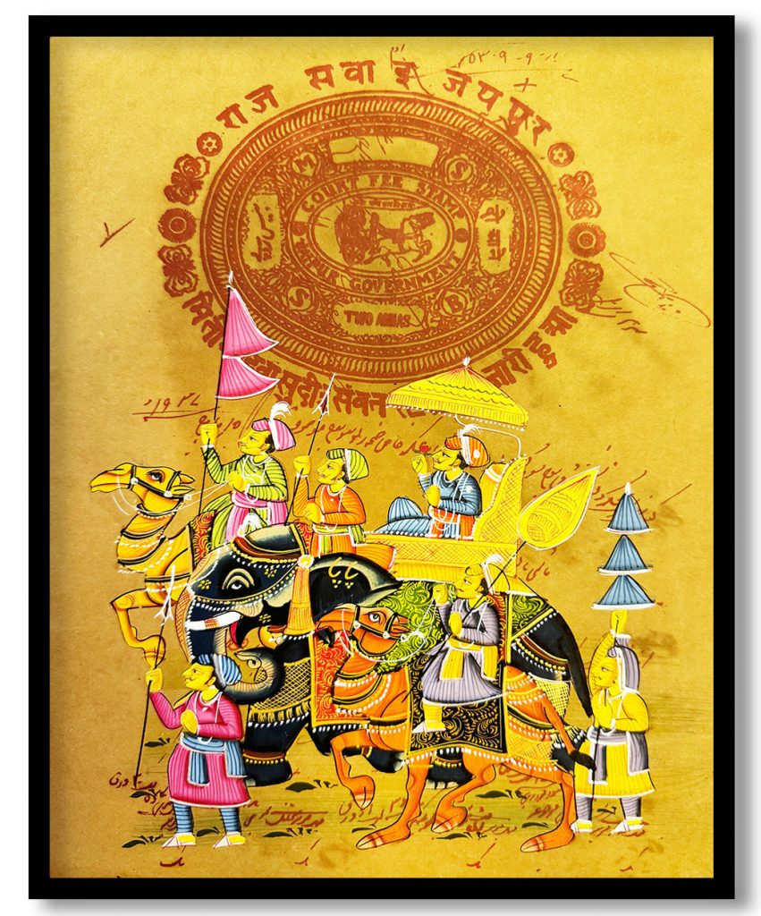 Framed Art | Jaipur king with soldier | 50+ Frame Styles • Museum Quality • Made in India