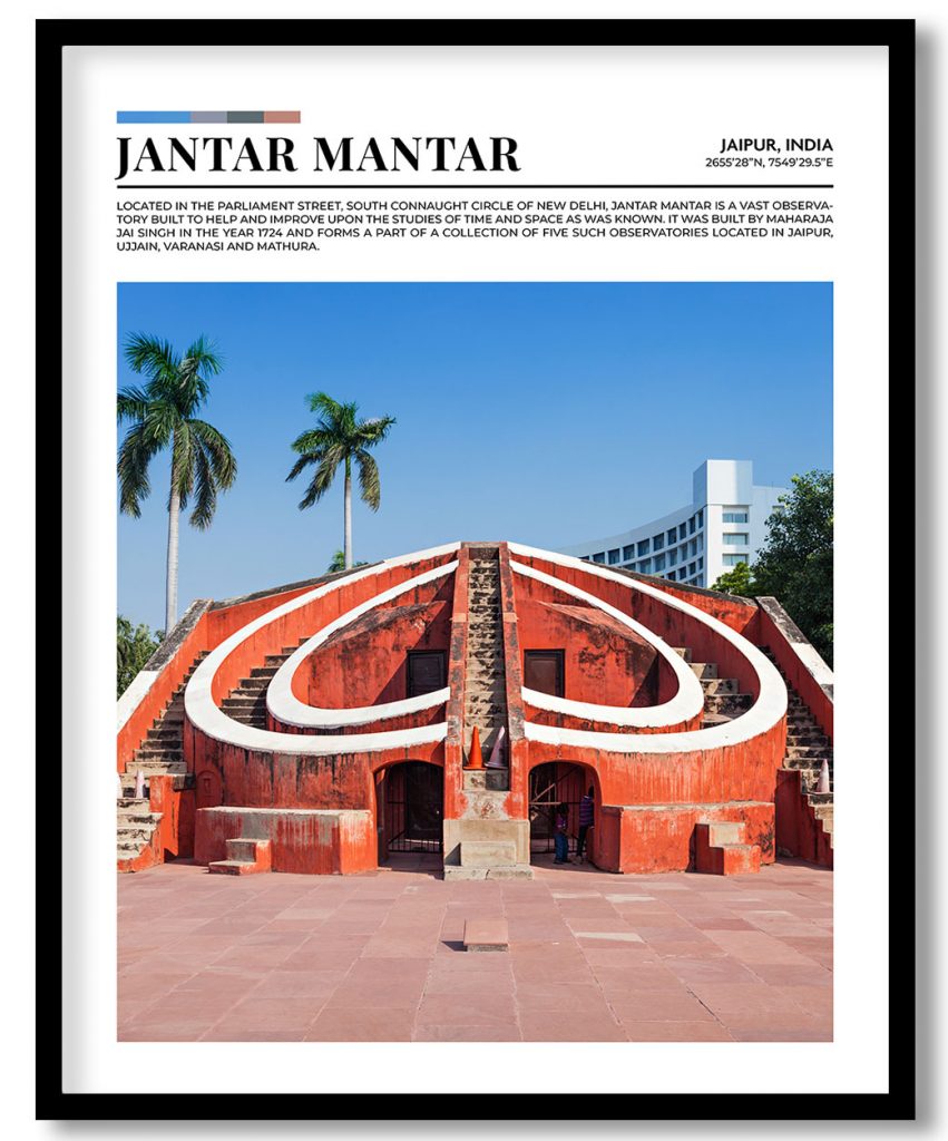 Framed Art | Jantar Mantar, India pantone poster | 50+ Frame Styles • Museum Quality • Made in India