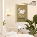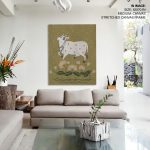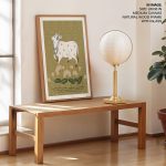 Wall Art | Kalamkari art of cow and ethnic lotus flowers | Small to XXXL Sizes • 50+ Framing Styles • Non Toxic