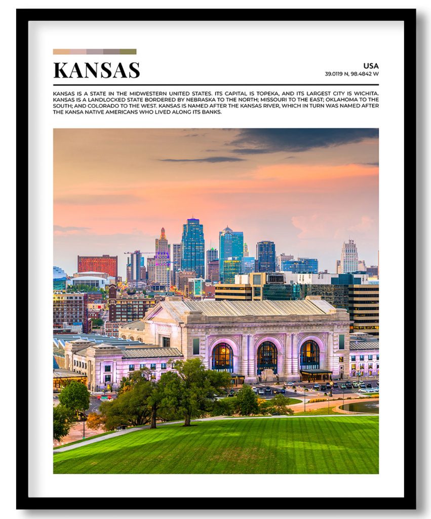 Wall Art | Kansas, USA pantone poster | Small to XXXL Sizes • 50+ Framing Styles • Non Toxic