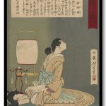 Kesa Gozen writing her last words before dying for her husband, from the series Twenty-four Accomplishments in Imperial Japan by Tsukioka Yoshitoshi (1887)