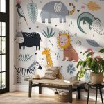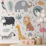 Kids safari animals mural - Non Toxic Wall Paper Decor, Home & Office Decor - BestOfBharat