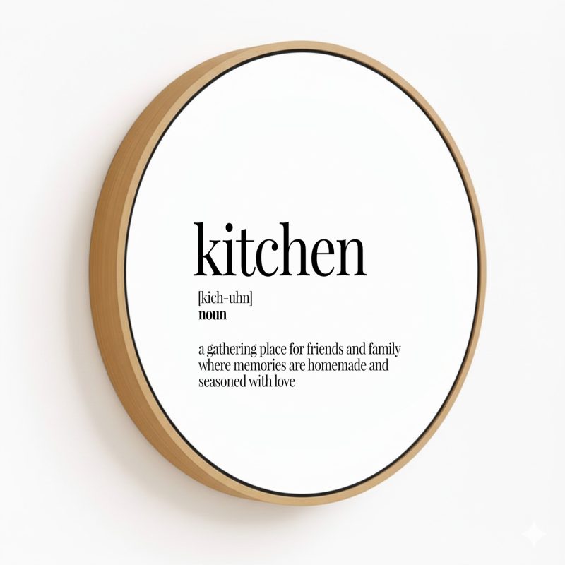 Wall Art | Kitchen - Funny Dictionary Definition - Food series - Wall Decor, Framed Art for kitchen, home - Choose size & custom frame color - Circular Wooden Frames | Small to XXXL Sizes • 50+ Framing Styles • Non Toxic