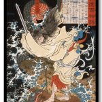 Kon Sōshū Facing a Dragon on a Promontory over the Sea by Tsukioka Yoshitoshi (1865)