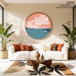 Framed Art | Landscape abstract - Circular Wooden Frame | 50+ Frame Styles • Museum Quality • Made in India