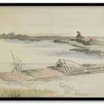 Landscape: boatman poling his raft by Katsushika Hokusai (1760-1849)