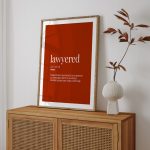 Wall Art | Lawyered - Funny Dictionary Definition, Rust Red | Small to XXXL Sizes • 50+ Framing Styles • Non Toxic