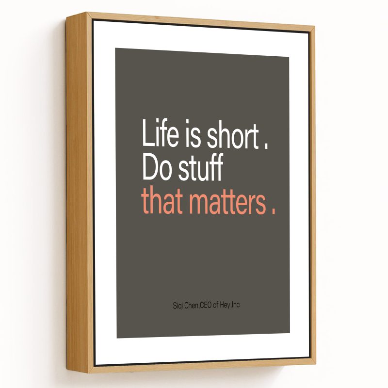 Framed Art | Life is short do stuff that matters quote by Siqi chen,CEO of Hey | 50+ Frame Styles • Museum Quality • Made in India