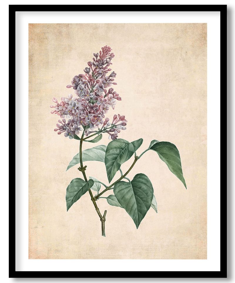 Wall Decor | Lilac flowering plant - Pressed Vintage Botanical | Custom Size & Frame • Ready to Hang • Made in India • Eco-Friendly