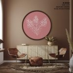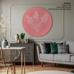Wall Art | Line drawing botanical floral #138 - Circular Wooden Frame | Small to XXXL Sizes • 50+ Framing Styles • Non Toxic