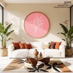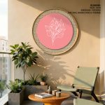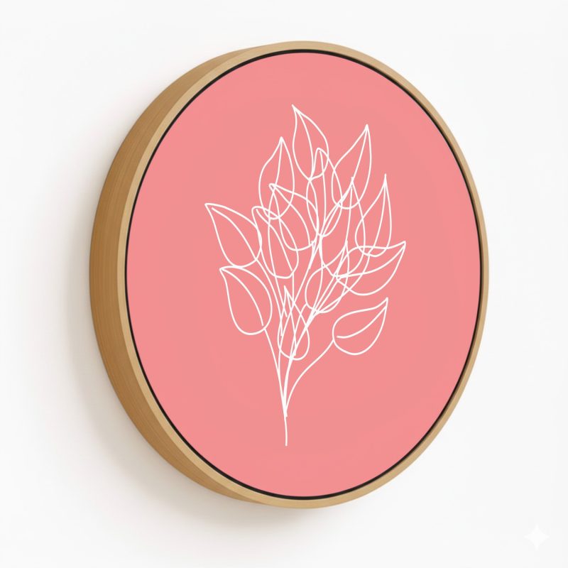 Wall Decor | Line drawing botanical floral #143 - Circular Wooden Frame | Custom Size & Frame • Ready to Hang • Made in India • Eco-Friendly
