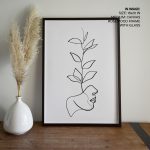 Wall Decor | Line drawing face with plant | Custom Size & Frame • Ready to Hang • Made in India • Eco-Friendly