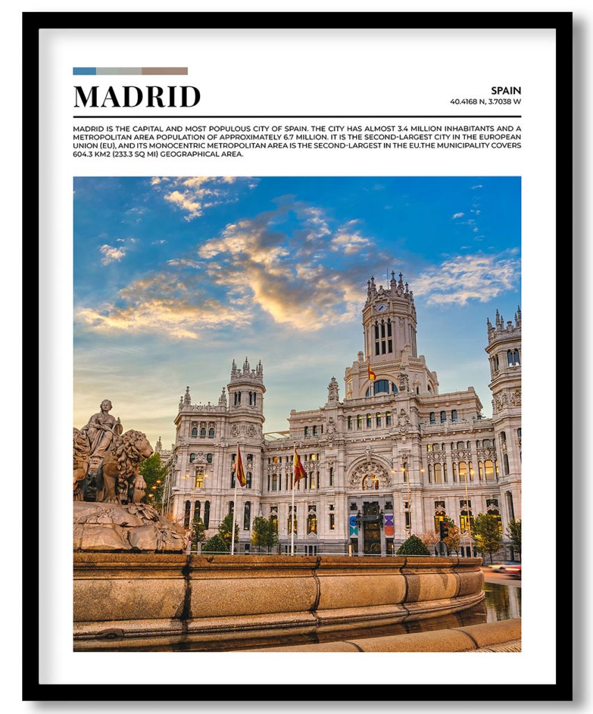 Wall Decor | Madrid, Spain pantone poster | Custom Size & Frame • Ready to Hang • Made in India • Eco-Friendly