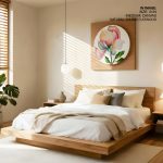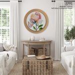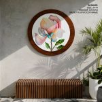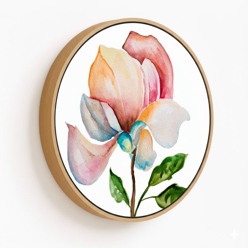 Wall Art | Minimal flower - Circular Wooden Frame | Small to XXXL Sizes • 50+ Framing Styles • Non Toxic
