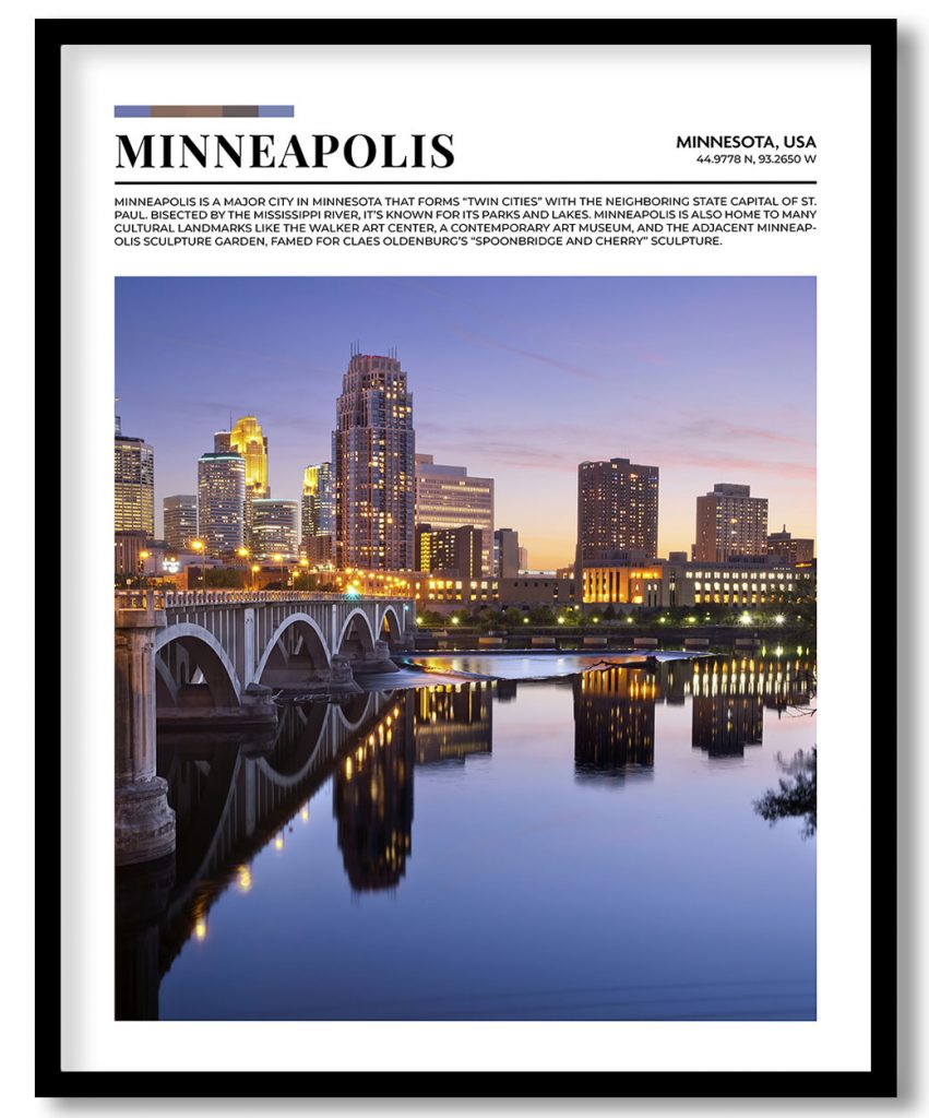 Wall Art | Minneapolis, Minnesota, USA pantone poster | Small to XXXL Sizes • 50+ Framing Styles • Non Toxic