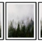 Misty Forest Framed Wall Art (Set of 3), Nature Art, Modern Art - Choose Size and Frame Color