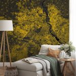 Wallpaper | Delhi Map Wall Mural - Modern black yellow, Mural Wallpaper, PVC Free, Non-Toxic | Non Toxic, No VOC, 14+ Textures, Free Installation