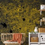 Hyderabad Map Wall Mural - Modern black yellow, Mural Wallpaper, PVC Free, Non-Toxic