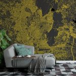 Jaipur Map Wall Mural - Modern black yellow, Mural Wallpaper, PVC Free, Non-Toxic