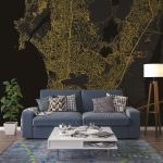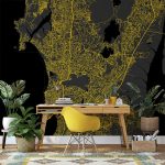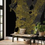 Mumbai Map Wall Mural - Modern black yellow, Mural Wallpaper, PVC Free, Non-Toxic