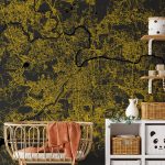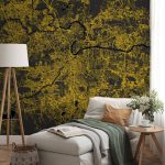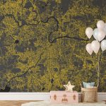 Pune Map Wall Mural - Modern black yellow, Mural Wallpaper, PVC Free, Non-Toxic