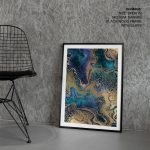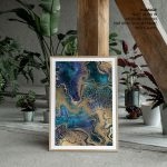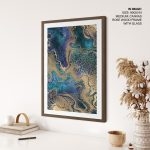 Wall Decor | Modern blue gold marble abstract | Custom Size & Frame • Ready to Hang • Made in India • Eco-Friendly