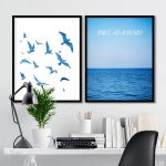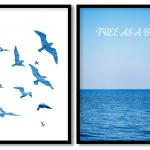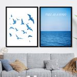 Wall Art | Set of 2 blue birds and ocean | Small to XXXL Sizes • 50+ Framing Styles • Non Toxic