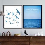 Wall Art | Set of 2 blue birds and ocean | Small to XXXL Sizes • 50+ Framing Styles • Non Toxic