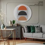 Wall Art | Modern mid century bohemian #372 - Circular Wooden Frame | Small to XXXL Sizes • 50+ Framing Styles • Non Toxic