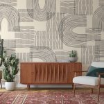 Wallpaper | Modern mid century line art figures seamless pattern | Non Toxic, No VOC, 14+ Textures, Free Installation