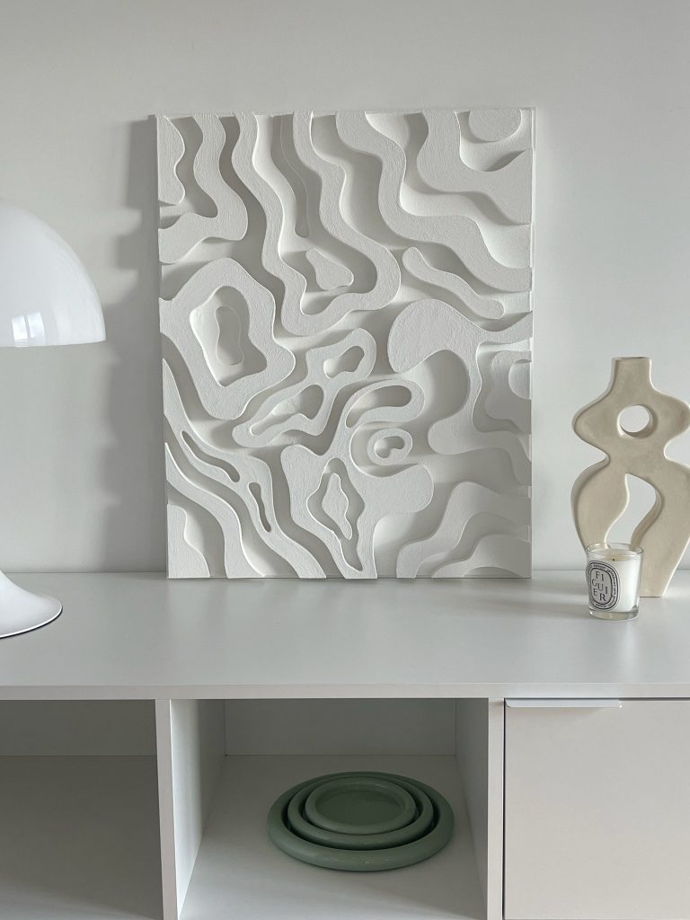 Sculpture | Modern Monochrome 3D Relief Art - Minimalist Textured Wall Sculpture for Home Decor | Handcrafted • Premium Materials • Museum Quality