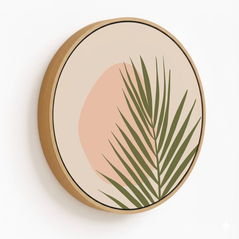 Framed Art | Mold boho leaves - Circular Wooden Frame | 50+ Frame Styles • Museum Quality • Made in India
