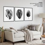 Monochrome Botanical Leaves Framed Wall Art (Set of 3), Nature Art, Abstract, Minimalist - Choose Size and Frame Color