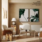 Monstera Abstract Framed Wall Art (Set of 2), Nature Art, Minimalist, Photography - Choose Size and Frame Color