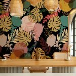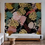 Monstera and Roses print - Mural Wallpaper, PVC Free, Non-Toxic - Non Toxic Wall Paper Decor, Home & Office Decor - BestOfBharat
