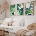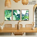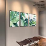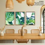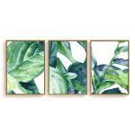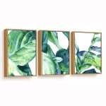 Monstera Leaf Watercolor Framed Wall Art (Set of 3), Nature Art, Minimalist, Botanical - Choose Size and Frame Color
