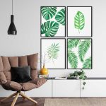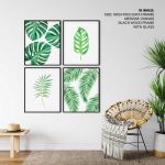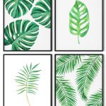 Monstera Leaves, Palm Leaves Framed Wall Art (Set of 4), Botanical Art, Nature Art, Tropical Art, Watercolor Art - Choose Size and Frame Color