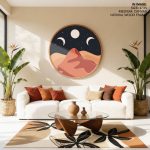 Wall Art | Moon phases landscape abstract #150 - Circular Wooden Frame | Small to XXXL Sizes • 50+ Framing Styles • Non Toxic
