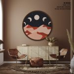 Moon phases landscape abstract #151 - Circular Wooden Frame